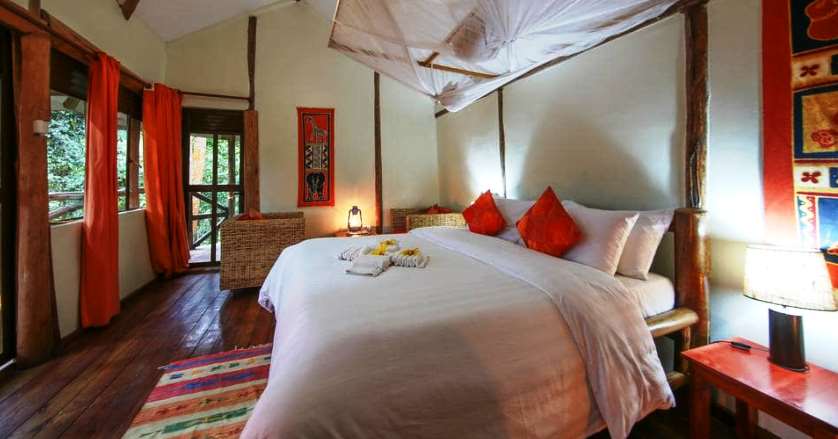 Just like its name, the Agandi Eco lodge in Bwindi Impenetrable National Park is eco-friendly; built using local materials, thatched roofs, and African architecture. It consists of African-style huts, Volcanic cottages, and Tree nests. They are self-contained with bathrooms and toilets. The nest trees are raised above the ground to enable guests to get stunning views around the area.
